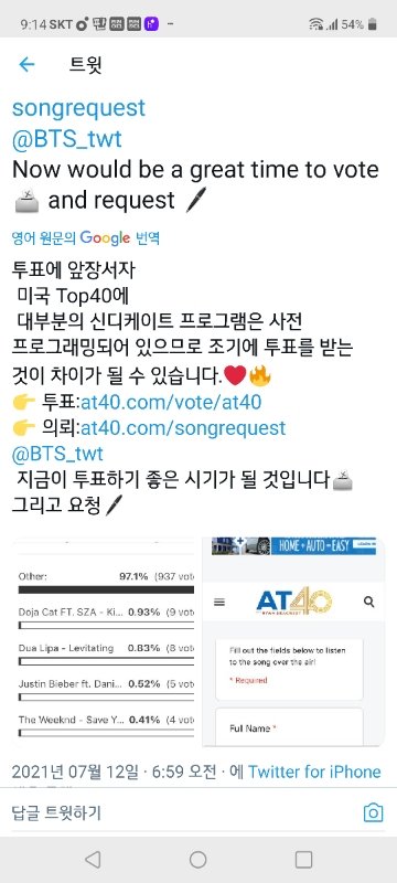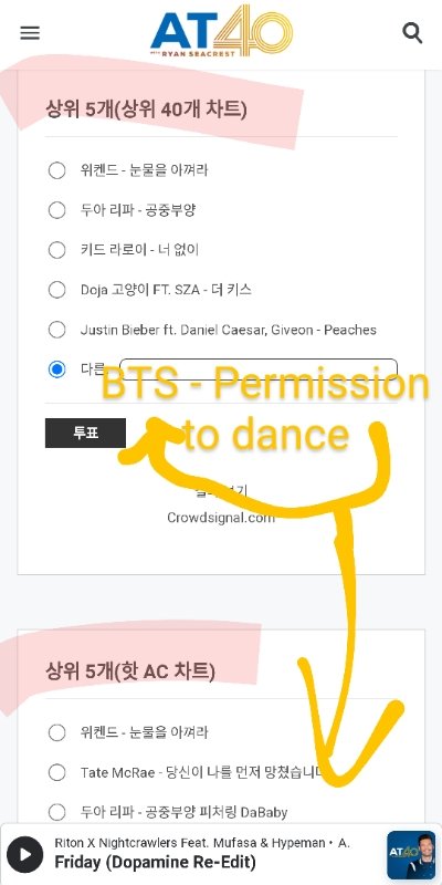 라디오 리퀘야 https://www.at40.com/vote/at40/ 두개 항목인데 기타에 요렇게 적어서 투표해줭ㅋㅋ