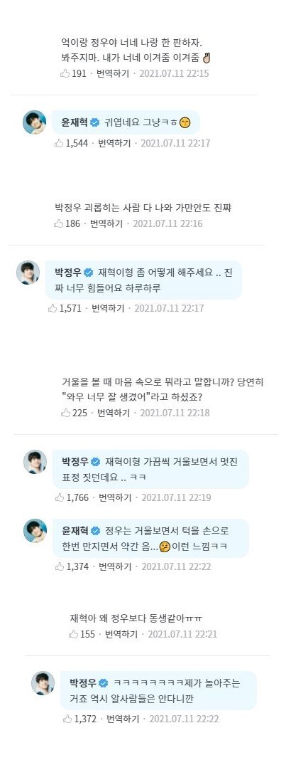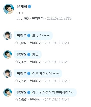 어제 위버스 너무 진짜 ㅋㅋㅋㅋ 재밌어가지고캡쳐떠서 개인소장 하려고 정리하다가 팬톡 생각나서 여기도 올릴게!