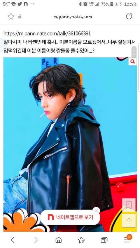 팬톡가라고 해서..뷔 너무 잘생긴듯..혹시 바쁘지않으면 나 뷔 짤들좀 줄수있을까..?