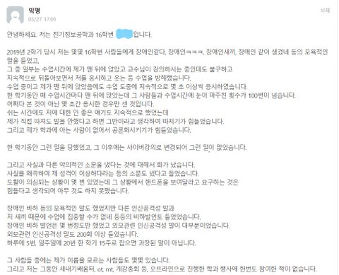 보통 사람이 평생 당할 인신공격을 대학교 학과 내 몇명에게서 당했습니다.