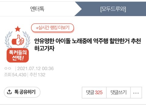 얘드라 여기 들어가서 짱타곤 조아요 누르자 ㅠㅡㅠ 사람들이 짱타곤 노래 이렇게라두 들어줬으면 하는 마음….