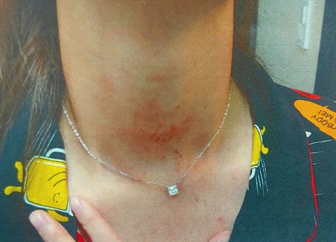 B의 피해사진을(제가 목졸림을 당하여 저항하던 중
