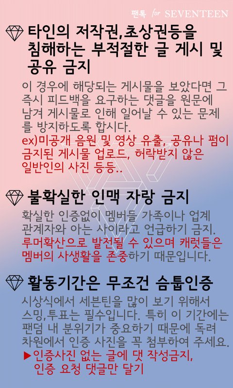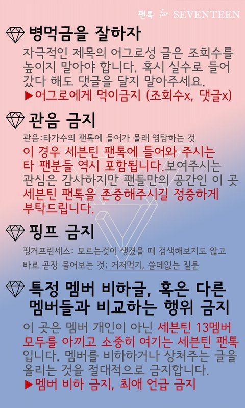 @캐럿필독@ 세븐틴 팬톡 규칙