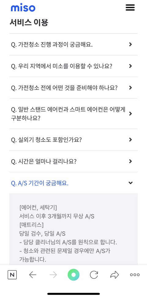 사건(!!!!!)이 일어난 것은 작년 6월. 중고로 산 에어컨을 처음으로 사용하게 되었는데 찝찝하기도 하고 냄새도 나는 것 같아서 청소 서비스 업체를 찾았다. 그러다가 발견한 문제의 미소. MISO 시댕.. 여튼 신청함. 어플로 신청했다.