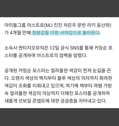 아스트로 여름 청량함 너무 기대돼 하 엄덯게 기다려 ㅠㅠㅠ