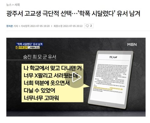 #3.유서 내용엔 맞고 다녔다는 내용이 있음.