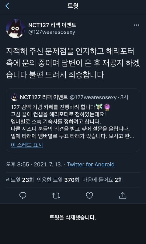 걍 트윗 삭제해버림