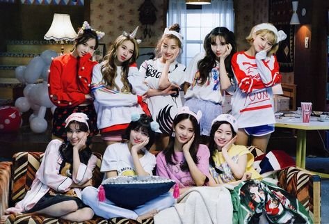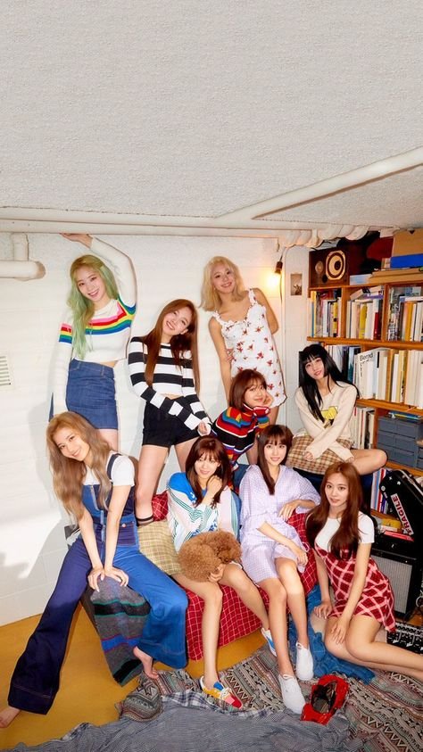 트와이스는 학교에서 진짜 잘나가는 유명한 얼짱들 크루같은 느낌! 진짜 반짝반짝하고 상큼한 아이돌스러운 하이틴 감성의 애들이 모인 거 같아! 예쁜 애 옆에 예쁜 애라는 수식어가 있듯이 하나같이 한 미모하는 퀸카들인거지. 그냥 학교도 아니고, 뭔가 명문학교 출신 애들이 같이 스터디도 하고, 무대도 하고... 멤버들이 많지만 그래도 못 떨어지는 사이라서 다같이 치어리딩도 하고, 겨울 캠프로 놀러간 숙소에서 다같이 모여서 영화도 보고, 여행도 가고..