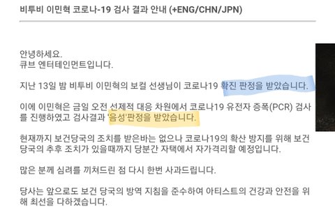 [단독] 비투비 이민혁, 스태프 확진으로 코로나19 검사.."자가격리"