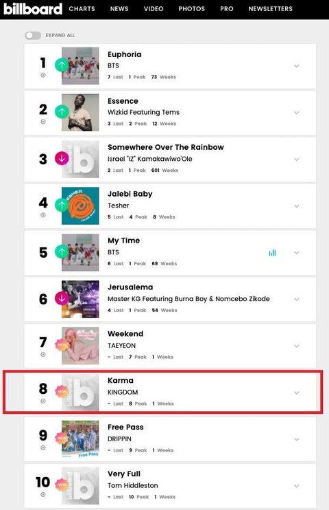 이는 데뷔 5개월 만에 이룬 성과로, 킹덤의 글로벌 인기 확장세를 여실히 증명했다. 더욱이 2021년 데뷔 남자 아이돌 중에서 유일한, 그리고 가장 높은 순위라는 점에서 의미가 깊다는 평가다.