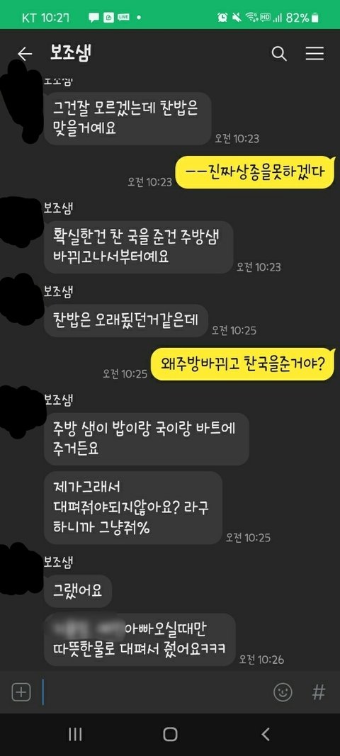 또한 대부분 선생님들이 저에대한 이런 소문들이며 아이들이 저녁에 어떻게 먹고 있는지도 알고계셨으나