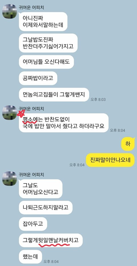 먹는게 안쓰러워 보여서 반찬도 따로 몇번 꺼내어주셔서 챙겨주신적도 많았다고 하셨어요