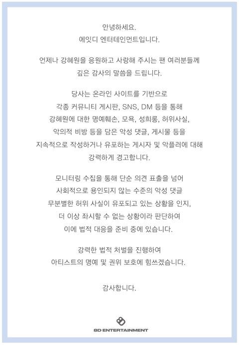 원래 고소 공지문에 웬만하면 dm은 안써있는데 이상하고 ㅂ. ㅅ 같은 dm도 많이 왔나봐 ..ㅠ 진짜 꼭 처벌하길 글고 아이돌들한테 이유 없이 까대지좀마라 그거 진짜 언젠가 잡혀가 얘들아 깠다가 글삭해도 팬들은 조용히 뒤에서 피뎊따서 보냄