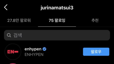 프듀에 나왔던 일본에서 제일 유명한 걸그룹 AKB48에서 인기 1위인 쥬리나가 케이팝 그룹 중 유일하게 엔하이픈만 팔로우함 ㅋㅋㅋ 되게 뜬끔없는데 뭔가 신기하다 ㅋㅋㅋ