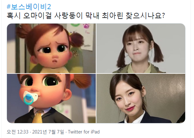 보스베이비2 개봉한다해서 닮은꼴 이벤트 열엇는데
