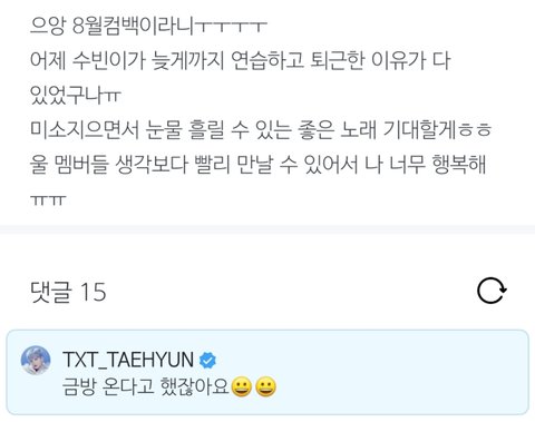 오늘 오전에 컴백 기사가 떴는데 공식이 아니라 단독이였음
