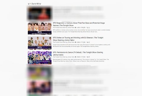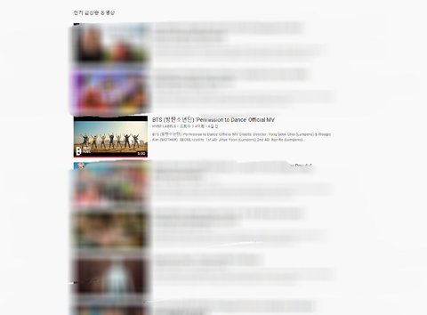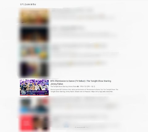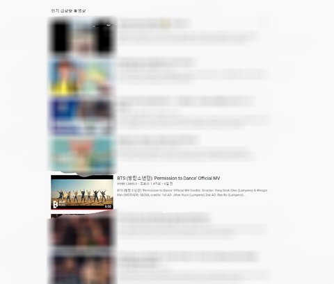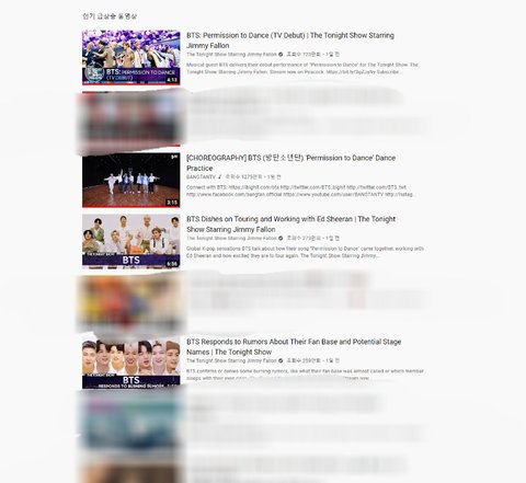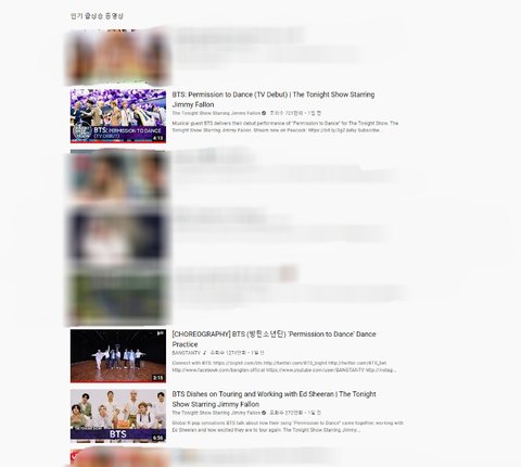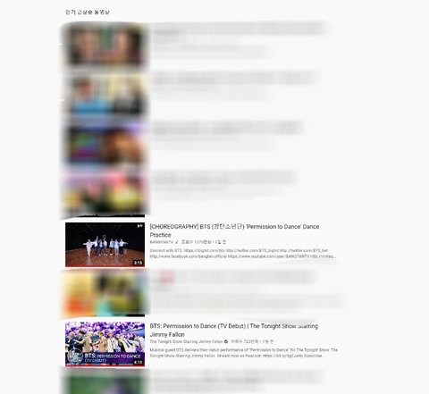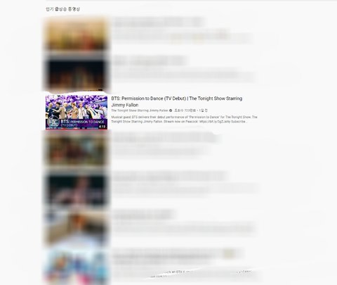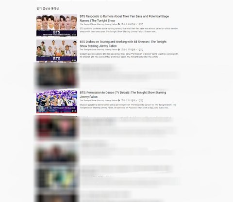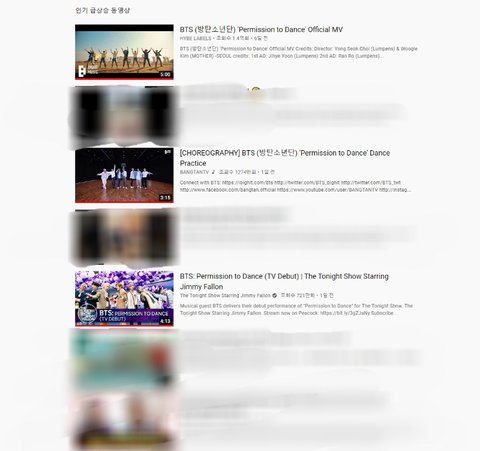 이걸로 다른 나라를 확인해보면 방탄소년단 영상이 대부분 인기동영상 상위에 랭크 돼 있음