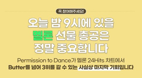 오늘 밤 9시에 있을 총공이 중요한 이유야 오늘 총공이 퍼투댄이 버터를 넘어 3위를 갈 수 있는 사실상 마지막 기회임