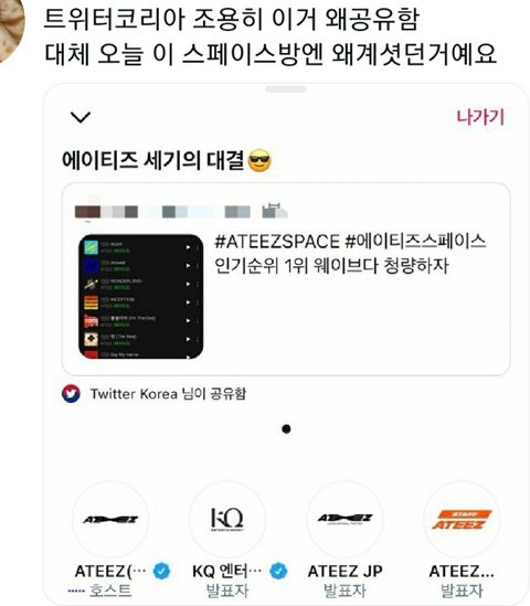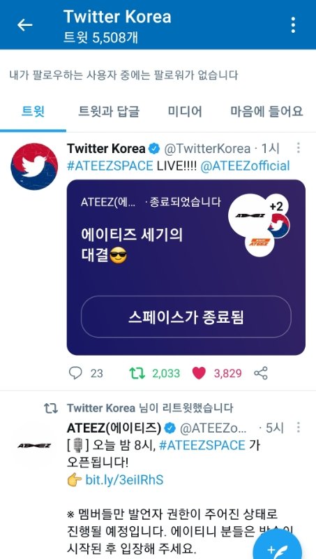 트위터코리아가 왜 티즈스페이스를 듣고있어