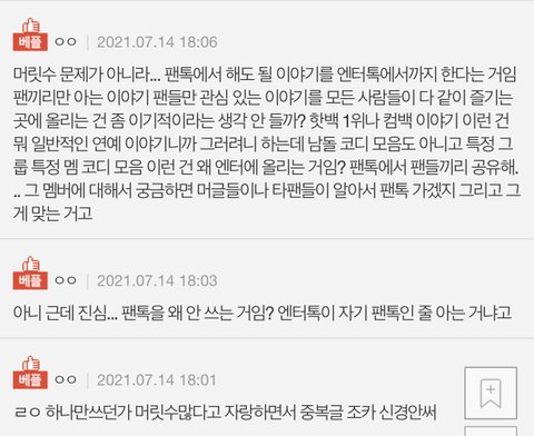 이게 현실이야 너네 ㅈㄴ싫어하는 판녀들 많으니까 엔터 다시는 오지마 너네 군대 팬톡? 거기 만들었다며 거기가서 놀고 영원히 엔터에 오지마 눈팅도 하지마