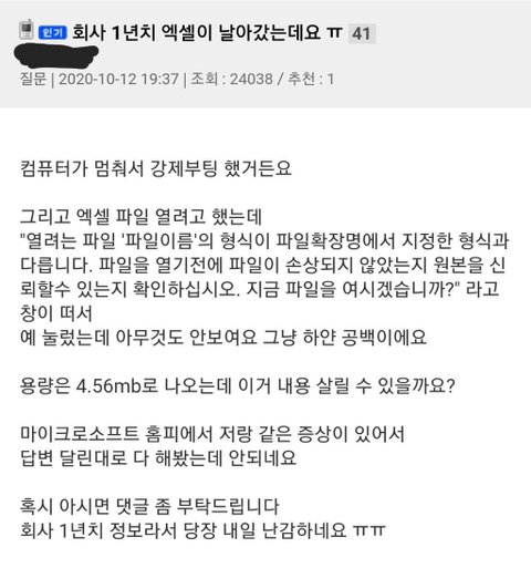 와….. 만약 공동으로 쓰는 엑셀이면 아찔하다..