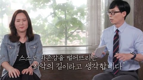 유재석: 내 스스로 자존감을 떨어뜨리는 최악의 길이라고 저는 생각합니다.