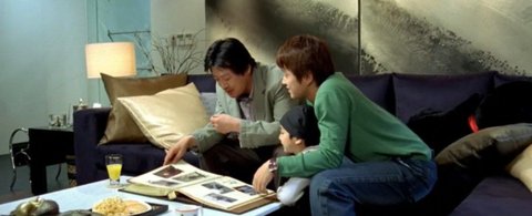 친구와 가정부와 아들이 예전 사진보며 웃고 있음