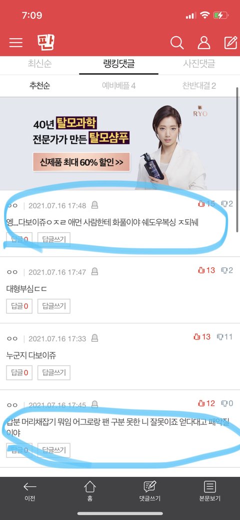 댓글 추천순 들어가서 내가 동그라미 친 댓글들 추천 눌러주라! 나머지 댓글 반대 누르지말고 댓글 절대 쓰지마 ❤️ 이미 톡선 가버려서 베플은 갈아야 됨