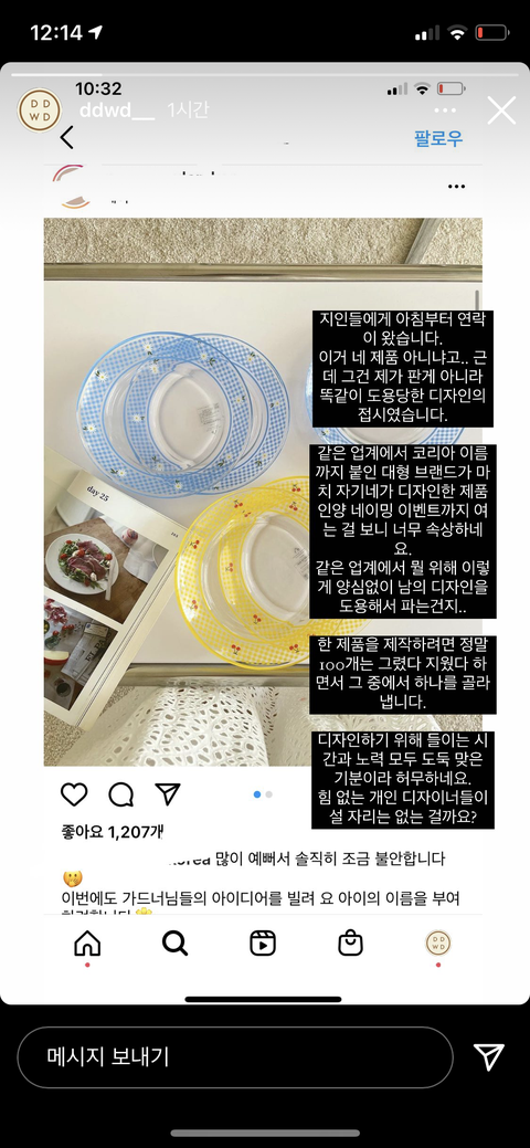 이건 제 잘못이지만 디자인 특허권은 1개 디자인당 100만원 정도 비용이 들기때문에 접시류는 등록하지 않았습니다. 왜냐면 종류가 워낙 많고 마진도 워낙 작기때문에 접시를 다 팔아도 100만원의 이득을 얻을까 말까하거든요…