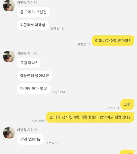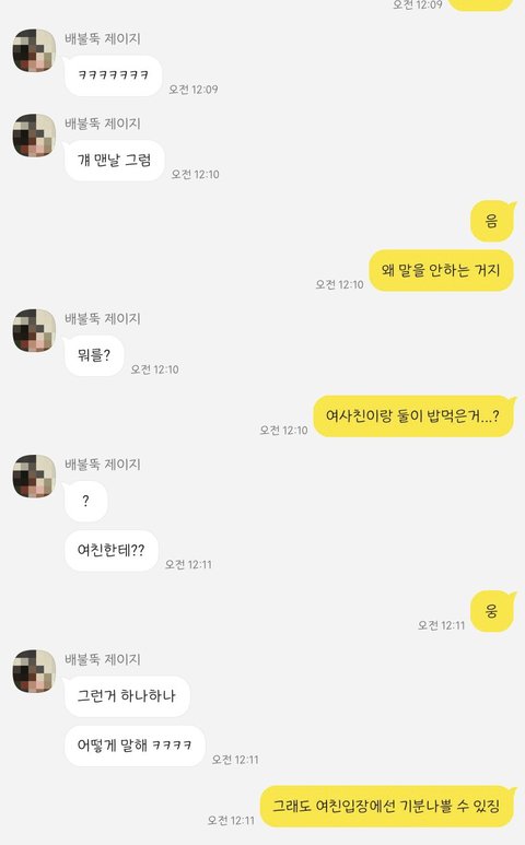 이건 남사친이 여친한테 말 안 하고 지 여사친이랑 밥먹는데 내가 좀 별로라고 하니까 내가 예민한 거라고 함
