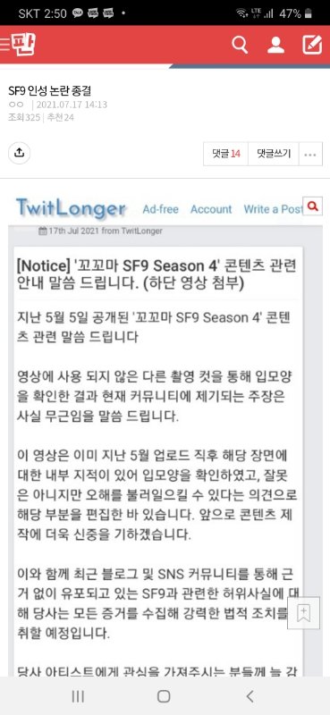다들 이거 추천 한번씩만 눌러줘라 톡선이든 실베든 일반 보내는게 좋을거같아 댓글에도 한번씩 눌러주고 타지들 고생했어ㅠㅠ