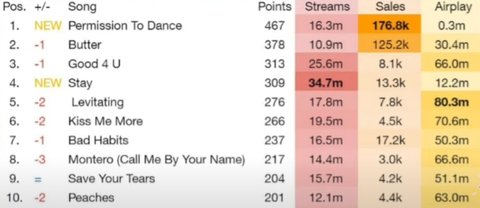 방탄 빌보드 핫100 1위 2위 싹쓸이 가능성