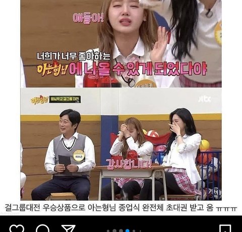 걸그룹 대전에서 아형 멤버 다같이 나올수있는 초대권 받았는데 진짜 저렇게 서럽게 움 ..