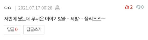 그리고 추반댓은 최대한 자제해줘ㅠㅠ 꼭 물어보고싶은게 있다면 댓글말고 답글로 추반해달라고 하는게 좋을거같아