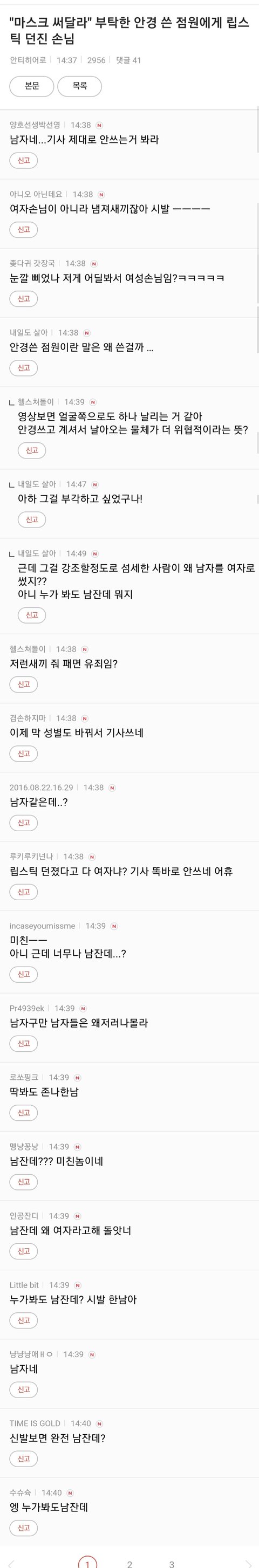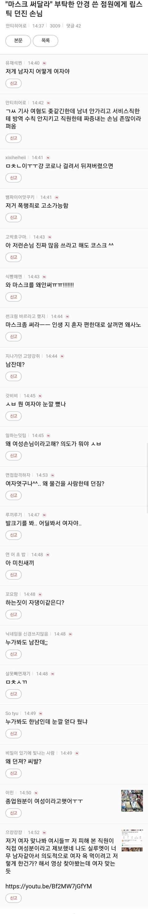 마스크 안쓴 탈코녀 한테 점원이 마스크 써달라니깐 립스틱 던져버림 ㅋㅋㅋㅋ근데 여시반응이 가관임 ㅋㅋㅋㅋㅋㅋㅋ