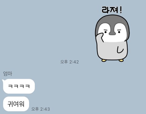 엄마가 뭐 하라 했는데 딱히 답하기 귀찮아서 휴닝이 이모티콘 하나 썼다가 2n년만에 엄마한테 처음으로 귀엽단 소리 들음