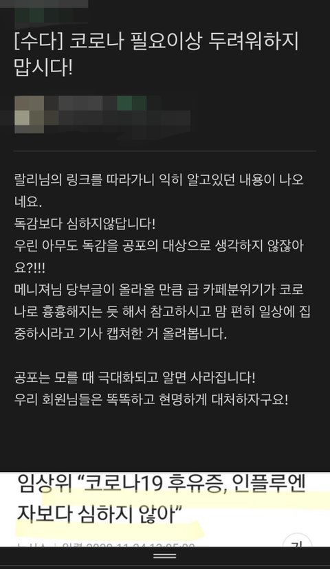 코로나 걸린 사람들이 빨리 쾌유되기를 다같이 기도하자.