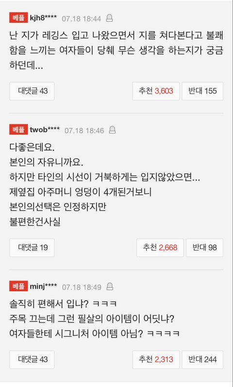 레깅스 편해서 입는다는 사람들.. 그렇게 따지면 시골 할매들도 다 입어야 하는데 현실은.. 몸빼바지