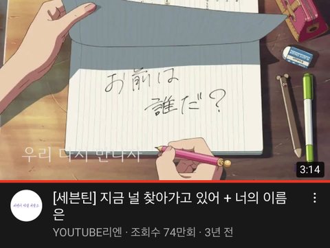 너의이름은 처돌이인데 보고 입틀어막았음ㅋㄱㅋㅋ 개봉 전에 멤버분이 만드신 노랜데 그냥 노래 오스티로 끼워넣어도 위화감x