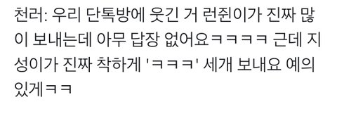 아무도 대답 안 하는 거랑 지성이 ㅋㅋㅋ 세 개 보내는 것도 ㅅㅂ ㅋㅋㅋㅋㅋㅋㅋ 아 얘네 일상이 코미디