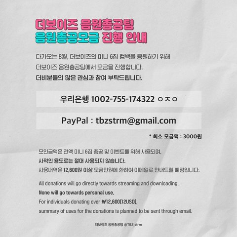 ✔더보이즈 컴백을 위한 모금 진행 안내