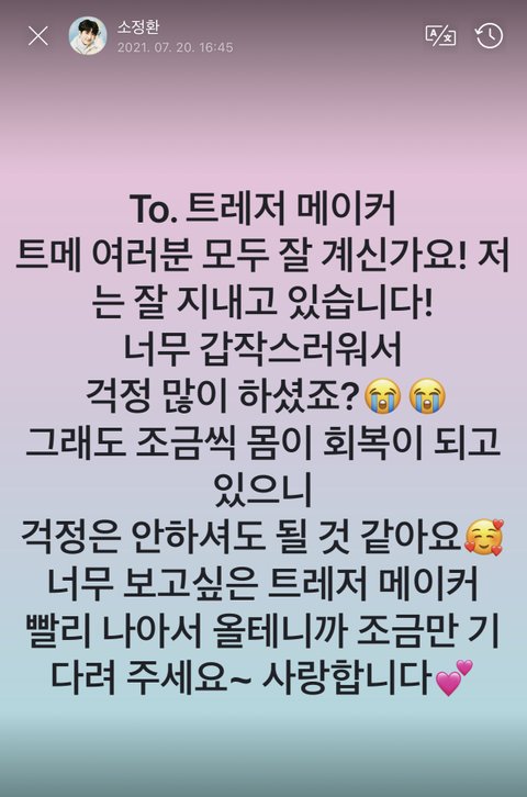 정환이 위버스 왔으니 바로 달려가세요ㅠㅠ