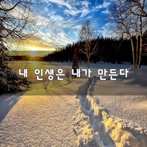 ♥ 내 인생은 내가 만든다 ♥ 수영할 줄 모르는 사람은수영장 바꾼다고 해결이 안되고,일하기 싫은 사람은직장을 바꾼다고 해결이 안되며,건강을 모르는 사람은비싼약을 먹는다고 병이 낫는게 아니고,사랑을 모르는 사람은상대를 바꾼다고 행복해지는게 아니다. 모든 문제의 근원은 내 자신이다. 내가 좋아하는 사람도 내 자신이고,내가 사랑하는 사람도 내 자신이며,내가 싫어하는 사람도 내 자신이다.내가 변하지 않고는 아무것도 변하는게 없다. 내 인생은 내가 만든다. 내가 빛이나면 내 인생은 화려하고,내가 사랑하면 내 인생은 행복이 넘치며,내가 유쾌하면 내 인생엔 웃음꽃이 필 것이다. 매일 똑같이 원망하고, 시기하고, 미워하면,내 인생은 지옥이 될것이다.내 마음이 있는 곳에 긍정과 희망을 원하면내 인생의 행복이 있을 것입니다. “화내도 하루”“웃어도 하루" 어차피 주어진 시간은 “똑같은 하루”기왕이면 불평 대신에 감사를! 부정 대신에 긍정을! 절망 대신에 희망을!