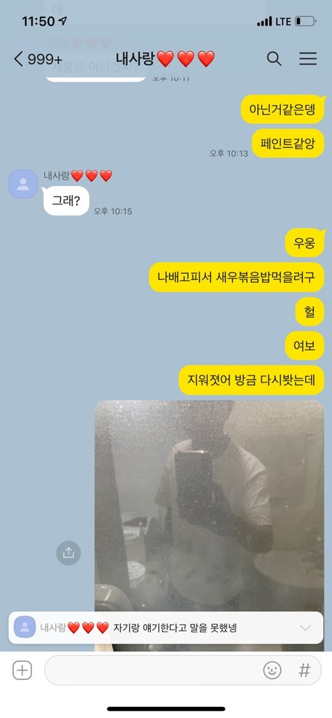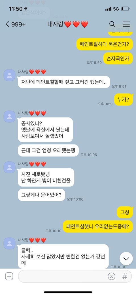 그래서 여친과 카톡중 밖에 페인트 공사한다고 그렇게 된건가? 싶었습니다.