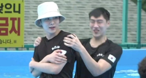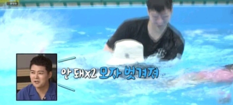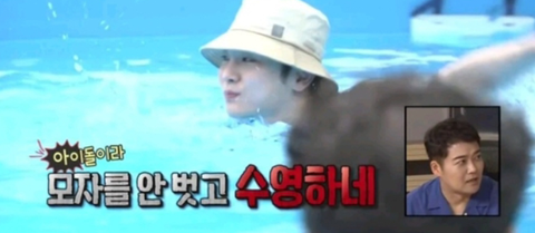 아이돌이라 모자 안 벗고 수영한대 ㅋㅋㅋㅋ