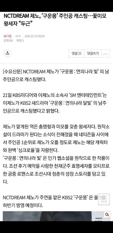 NCTDREAM 제노, '구운몽' 주인공 캐스팅…꽃미모 왕세자 “두근"