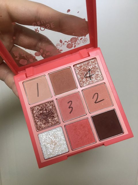 그 다음에 이제 눈화장인데 먼저 1로 가볍게 눈 전체랑 언더 한번 깔고 그 다음에 2로 눈 위에만 한번 더 깔아 그리고 3을 언더랑 애굣살에 발라준 다음에 4로 애굣살이랑 눈 위 가운데에만 브러쉬로 톡톡 얹어주면 돼!! 삼각존은 집에 있는 그냥 붉은기 있는 음영 섀도우로 채워줘