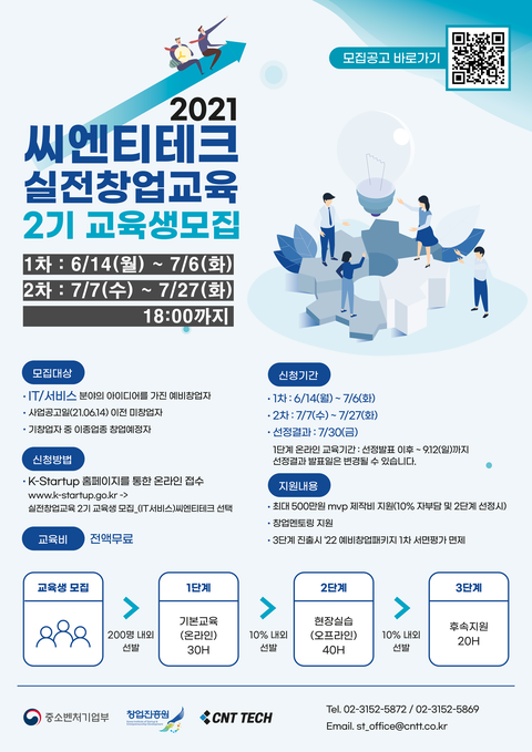 >신청방법 : K-Startup 홈페이지를 통한 온라인 접수 https://_/FlJ1abin > 접수시 씨엔티테크 선택>교육비 : 전액무료