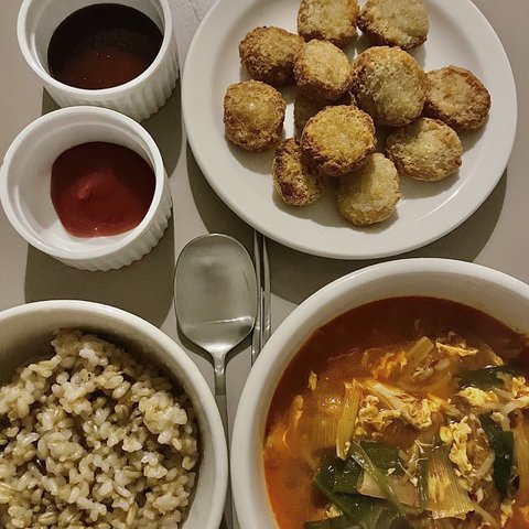 진짜 현실 자취밥상이나 올려요 제목 기만자네ㅋㅋ 조카 온갖 정성 다들여놓고ㅋㅋ 근데 왜 시키거나 기성품을 한것처럼 올려요?