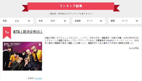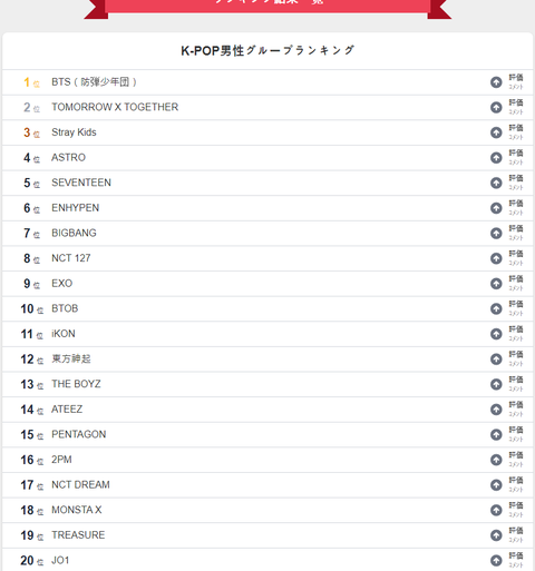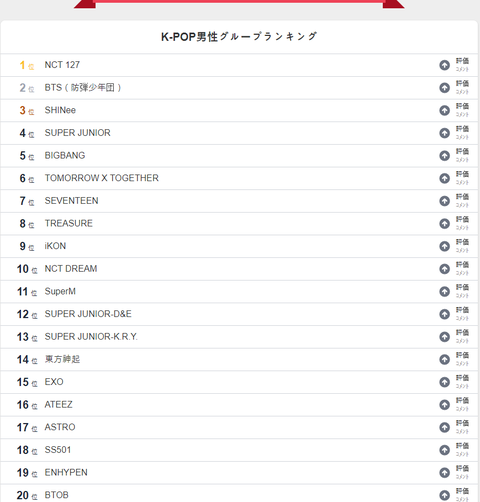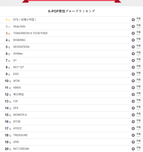 일본 10대 여성 선호 케이팝 남그룹 TOP20